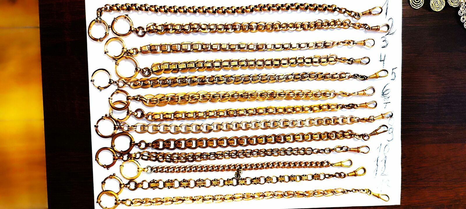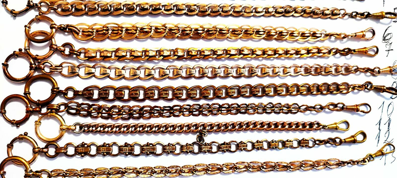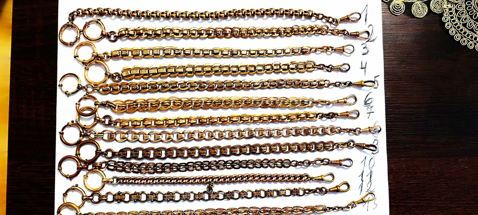 Witam sprzedam stare dewizki złocone 18K złotem do zegarków kieszonkowych dewizki są ponumerowane dł;260mm ,szer;9mm ,cena dotyczy jednej sztuki.Polecamosoba prywatna